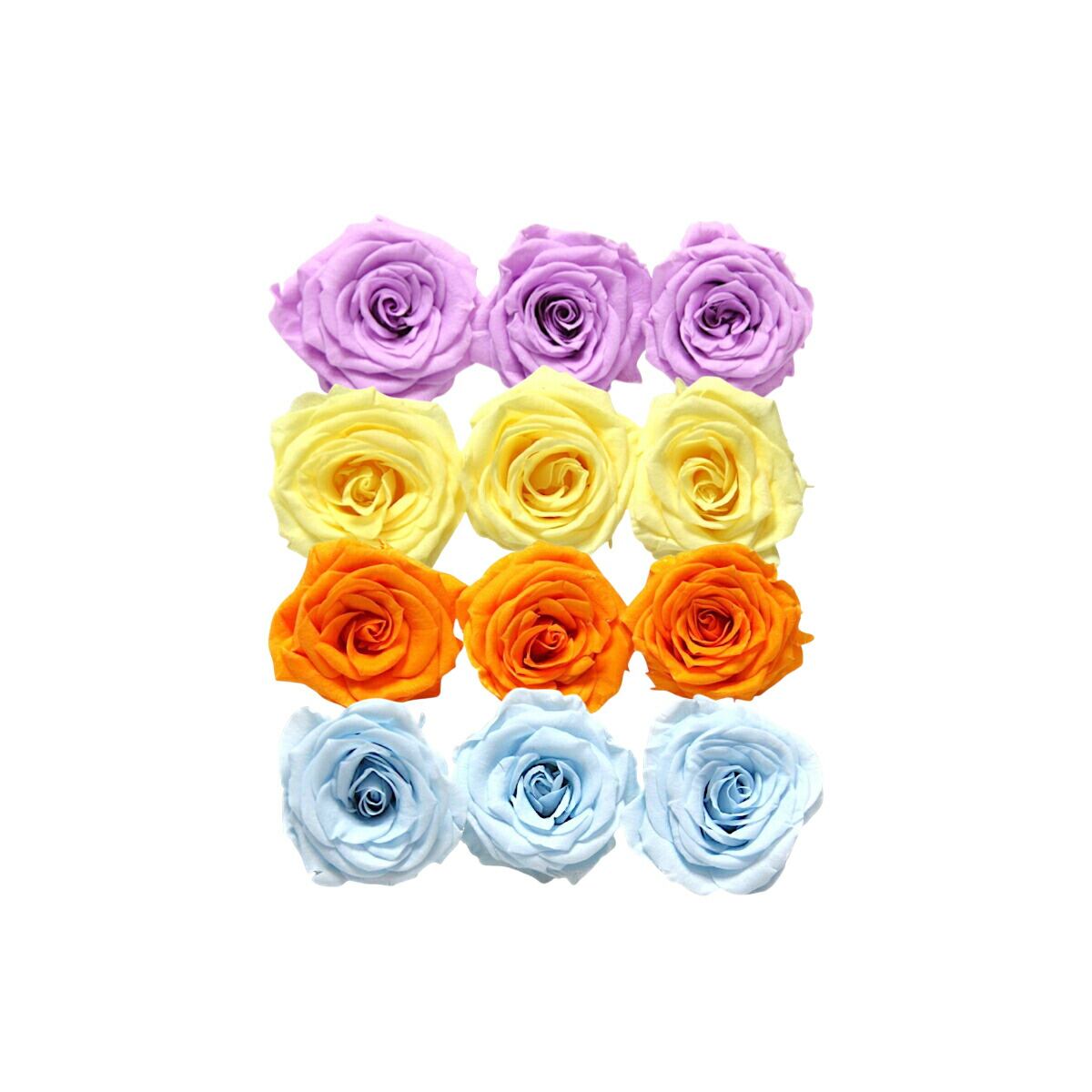 大地農園!プリザーブドフラワー「シャーロット 4色×3輪アソート 計12輪」「スウィートライラック モーニングイエロー フルーティオレンジ ベビーブルー」プリザ 花材 ハーバリウム おしゃれ ピンク バラ かわいい プレゼント 贈り物 オオチノウエン