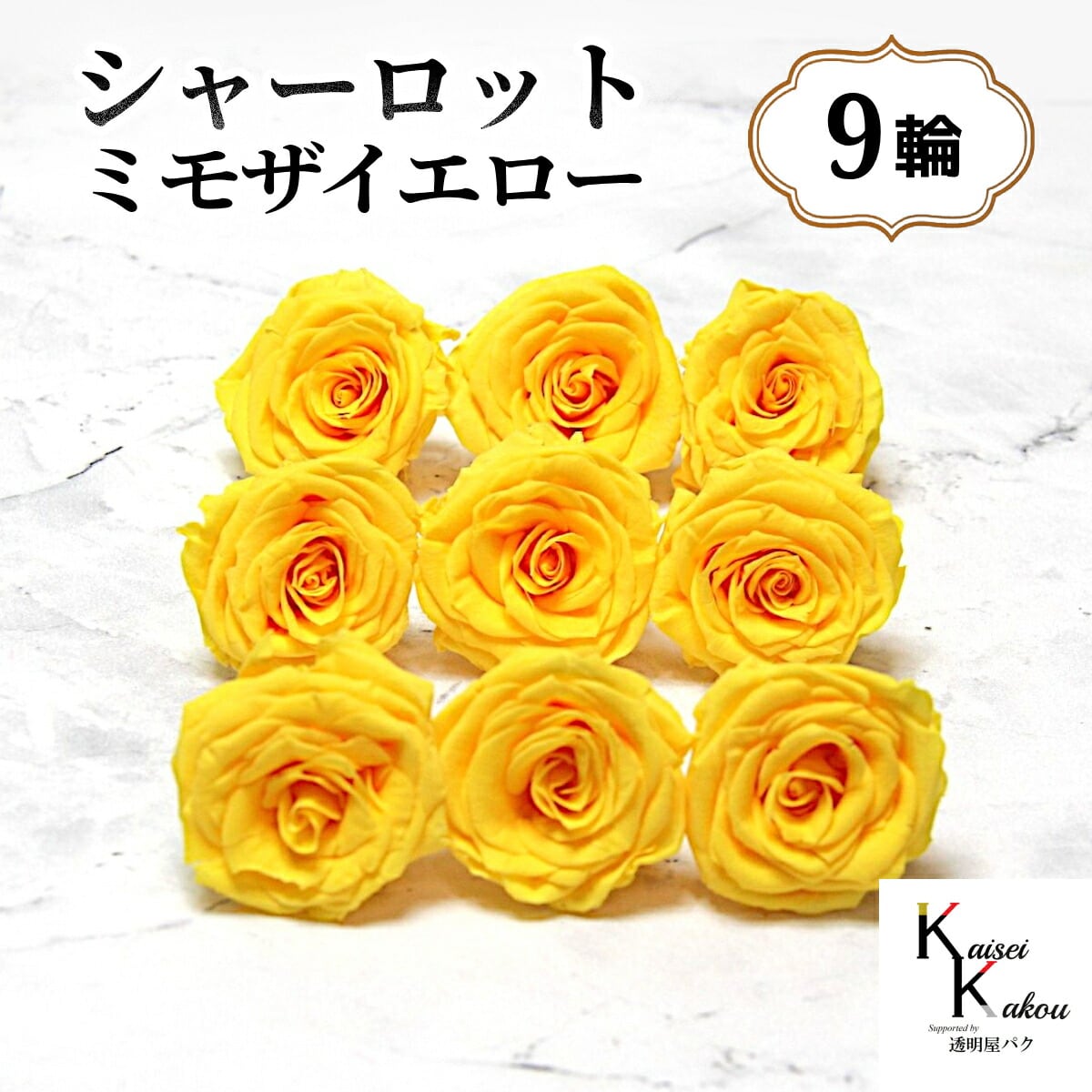 大地農園!プリザーブドフラワー 「シャーロット ミモザイエロー 9輪」 プリザ 花材 ハーバリウム おしゃれ イエロー 黄色 バラ かわいい プレゼント 贈り物 オオチノウエン