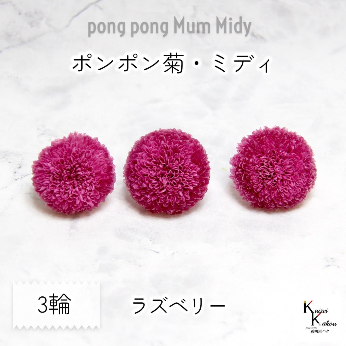 大地農園! プリザーブドフラワー 「ポンポン菊・ミディ ラズベリー 3輪」プリザ ドライフラワー 花材 装飾 ハーバリウム おしゃれ かわいい プレゼント 贈り物 オオチノウエン