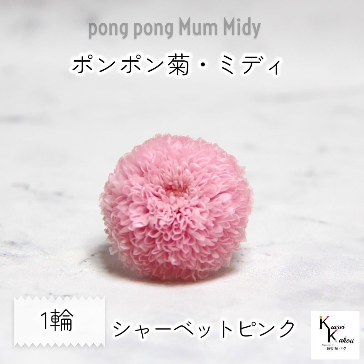 大地農園! プリザーブドフラワー 「ポンポン菊・ミディ シャーベットピンク 1輪」プリザ ドライフラワー 花材 装飾 ハーバリウム おしゃれ かわいい プレゼント 贈り物 オオチノウエン