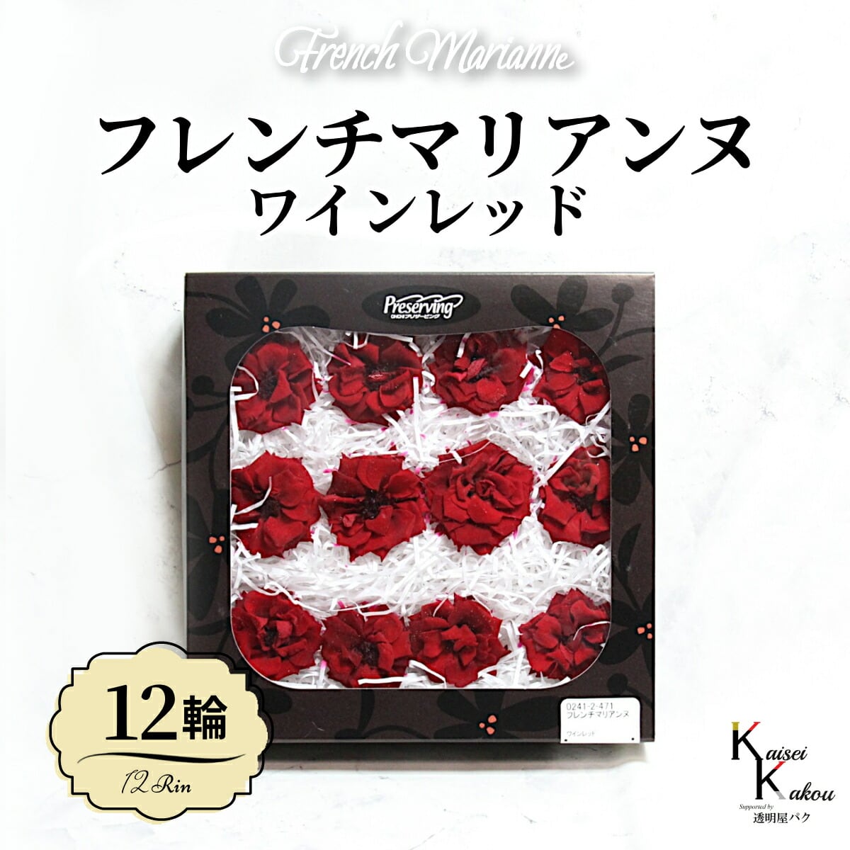 大地農園!プリザーブドフラワー 「フレンチマリアンヌ 12輪(1箱) ワインレッド」 プリザ 花材 ハーバリウム おしゃれ かわいい プレゼント 贈り物 オオチノウエン バラ 薔薇 ローズ rose