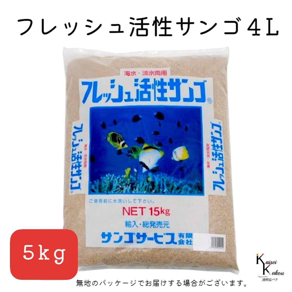 サンゴサービス 「フレッシュ活性サンゴ 4Lサイズ 5kg」 サンゴ 天然珊瑚砂 coral 海水魚 観賞魚 pHを中性〜弱アルカリ性の状態を保ち安定した水質を持続します こちらの商品は、4Lサイズとなります。粒サイズ:約40〜60mm内容量:5kg特長pHを中性〜弱アルカリ性の状態を保ち安定した水質を持続します。雑菌等の抑制効果により魚が活き活き育ちます。魚の排泄物等から出るアンモニア性窒素の分解を活発に促進します。生物的ろ過により、バクテリアを繁殖させ良好な生活環境となります。脱臭効果があります。状態:海外産天然サンゴ砂を洗浄・乾燥の処理後、袋に詰めた商品主な用途:底砂、レイアウト他のサイズもご用意ございます。・SSSサイズ・SSサイズ・Sサイズ・Mサイズ・Lサイズ・LLサイズ・LLLサイズ・4Lサイズこちらは「4Lサイズ」の商品です。※写真に載っている大きさは目安となります。※自然物なので形は様々です。※形をお選びすることはできません。※無地の袋での発送になる場合があります。※箱に直接梱包することもございます。 5