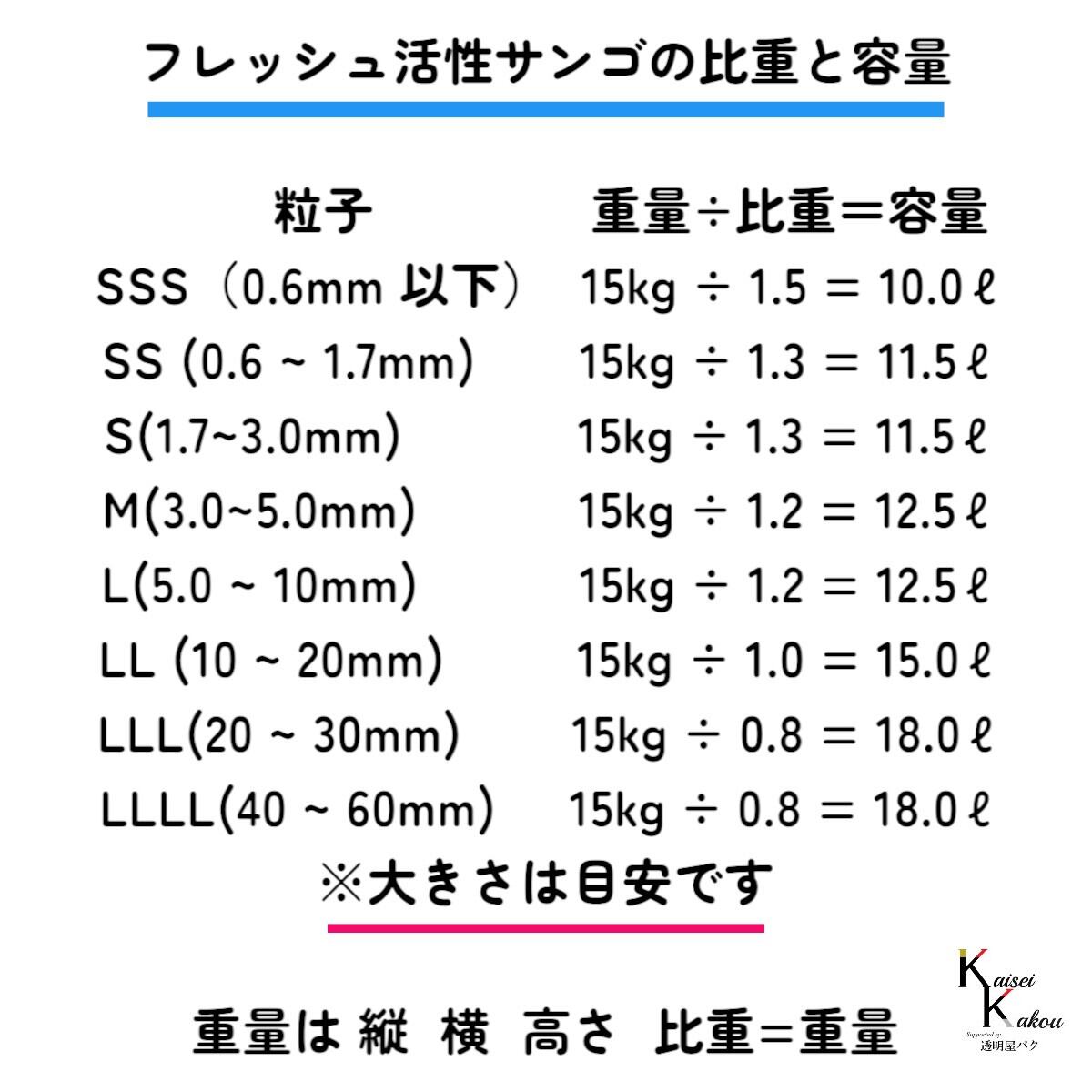 サンゴサービス 「フレッシュ活性サンゴ Lサイズ 13kg」 サンゴ 天然珊瑚砂 coral 海水魚 観賞魚 pHを中性〜弱アルカリ性の状態を保ち安定した水質を持続します こちらの商品は、Lサイズとなります。粒サイズ:約5.0〜10mm内容量:13kg特長pHを中性〜弱アルカリ性の状態を保ち安定した水質を持続します。雑菌等の抑制効果により魚が活き活き育ちます。魚の排泄物等から出るアンモニア性窒素の分解を活発に促進します。生物的ろ過により、バクテリアを繁殖させ良好な生活環境となります。脱臭効果があります。状態:海外産天然サンゴ砂を洗浄・乾燥の処理後、袋に詰めた商品主な用途:底砂、レイアウト他のサイズもご用意ございます。・SSSサイズ・SSサイズ・Sサイズ・Mサイズ・Lサイズ・LLサイズ・LLLサイズ・4Lサイズこちらは「Lサイズ」の商品です。※写真に載っている大きさは目安となります。※自然物なので形は様々です。※形をお選びすることはできません。※無地の袋での発送になる場合があります。※箱に直接梱包することもございます。 5