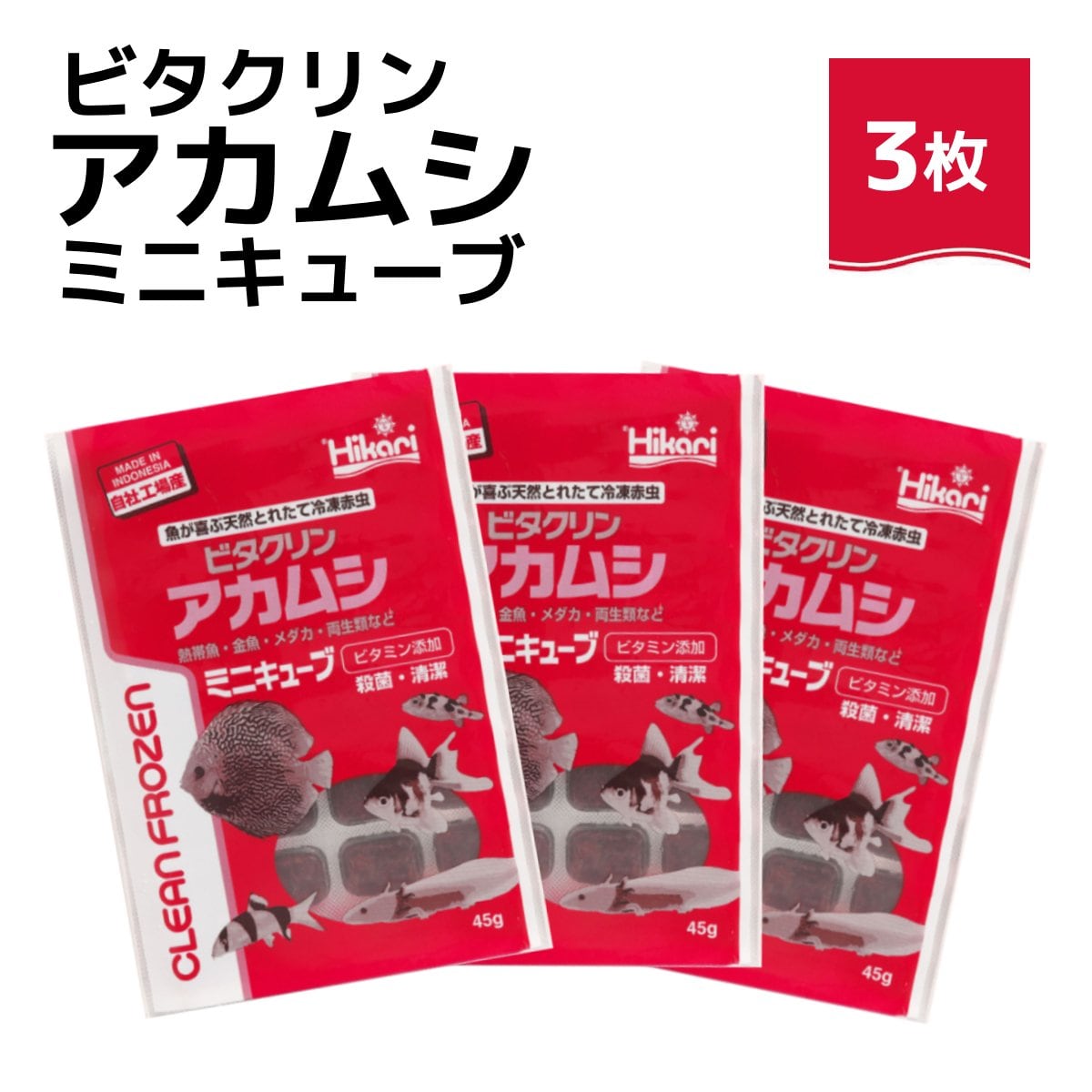 「 ビタクリンアカムシミニキューブ 45g×3枚 キョーリン 冷凍餌 」魚のえさ 赤虫 天然飼料 超急速冷凍 金魚 鯉 ディスカス エンゼルフィッシュ グッピー 淡水魚 ミニキューブ