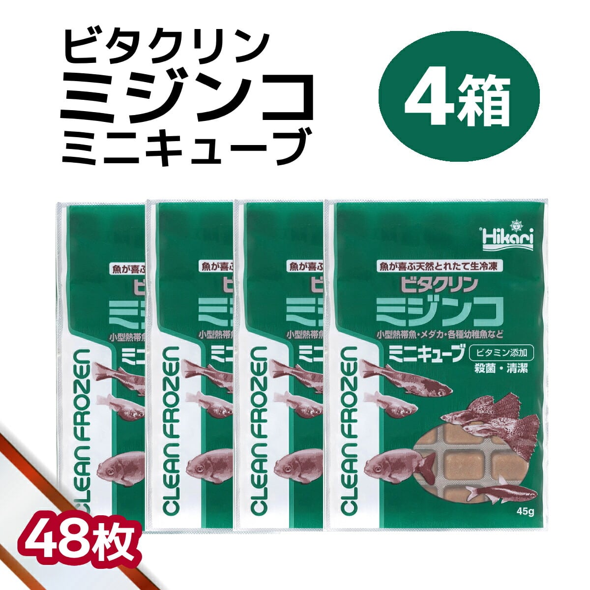 「 ビタクリンミジンコ ミニキューブ 4箱 45g×48枚 キョーリン 冷凍餌 」魚のえさ みじんこ 天然飼料 超急速冷凍 ネオンテトラ グッピー ラスボラ 小型熱帯魚 稚魚 幼魚 小型海水魚 イソギンチャク