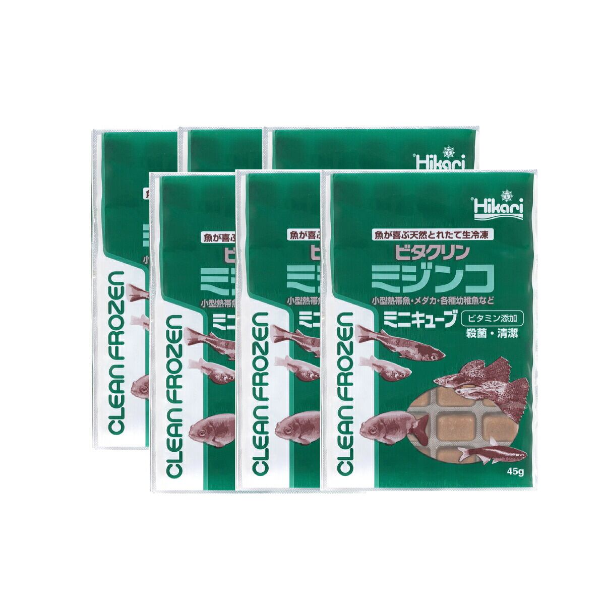 「 ビタクリンミジンコ ミニキューブ 6箱 45g×72枚 キョーリン 冷凍餌 」魚のえさ みじんこ 天然飼料 超急速冷凍 ネオンテトラ グッピー ラスボラ 小型熱帯魚 稚魚 幼魚 小型海水魚 イソギンチャク ビタミンを添加した、クリーンフローズンフード。とれたてのミジンコを独自の技術で洗浄・殺菌。マルチビタミンも添加し、清潔で栄養が強化された冷凍フードです とれたてのミジンコを独自の技術で傷つける事無く洗浄し、複数の工程で病原菌を殺菌。さらにマルチビタミンを添加した、清潔で栄養が強化された冷凍フードです。ミジンコは、冷凍赤虫が口に入らないようなメダカや小型熱帯魚が食べやすい大きさです。また金魚をはじめ様々な魚種の幼稚魚に最適です。良質な脂質である不飽和脂肪酸を多く含んでいます。カロチノイドを豊富に含み、赤の色揚げ効果が期待できます。新鮮な原料を生のままパッキングし、超低温下で瞬間的に凍結させることで鮮度の高さを保持しています。薬の錠剤と同様のPTP包装が空気を遮断し、変質を防ぎます。また、中身が手に触れる事無く取り出すことができます。ビタクリンミジンコのキューブ内容量を少なくしました。1キューブ辺りの重量は従来品の半分弱です。(45gで32キューブ)小型水槽や少数飼育のユーザーにお勧めです。【対象魚】ネオンテトラ、グッピー、ラスボラ等小型熱帯魚、ディスカス等の稚魚、幼魚全般、小型海水魚、イソギンチャク 他【与え方】冷凍のまま折るようにキューブを指で押すと、アルミ箔が破れて取り出せます。凍ったままか別容器に溶かし、数分で食べ切る量を与えてください。一度解凍された商品は再冷凍しないでください。ミジンコの細胞が破れ水を汚す原因になります。天然の原料を使用し、着色料無添加なため、色が異なる場合がございますが、魚に対する栄養学的な品質差はありません。 5