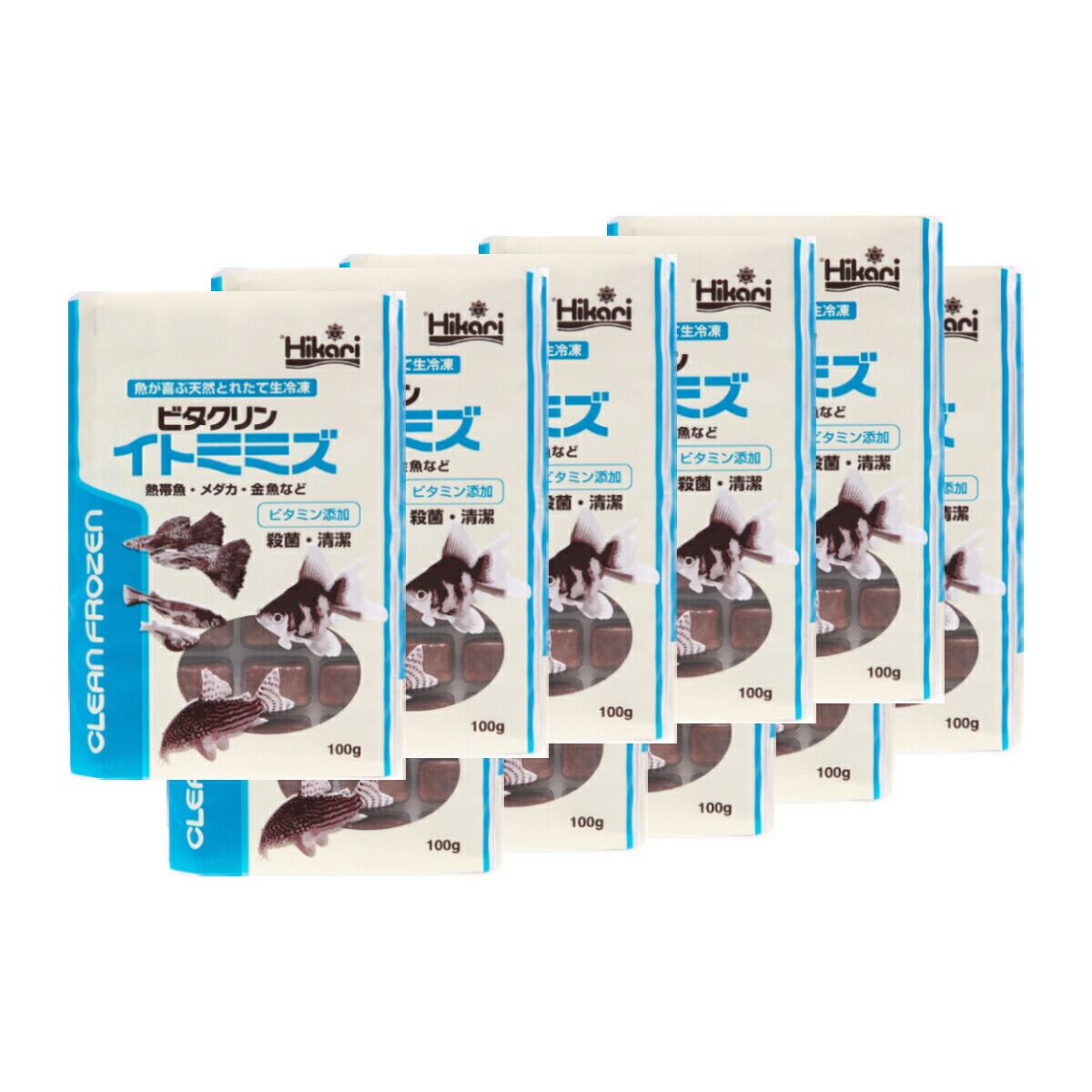 「 ビタクリンイトミミズ 100g×10枚 キョーリン 冷凍餌 」魚のえさ 糸ミミズ 天然飼料 超急速冷凍 コリドラス アベニーパファ 小型熱帯魚 メダカ 川魚 金魚 ビーシュリンプ ビタミンを添加した、クリーンフローズンフード。とれたてのイトミミズを独自の技術で洗浄・殺菌。マルチビタミンも添加し、清潔で栄養が強化された冷凍フードです。 とれたてのイトミミズを独自の技術で傷つける事無く洗浄し、複数の工程で病原菌を殺菌。さらにマルチビタミンを添加した、清潔で栄養が強化された冷凍フードです。イトミミズは、冷凍赤虫より表皮が柔らかく細いため口が小さいメダカや小型熱帯魚も比較的食べやすい形状です。栄養価が高く、観賞魚をしっかり太らせたい時におすすめです。新鮮な原料を生のままパッキングし、超低温下で瞬間的に凍結させることで鮮度の高さを保持しています。薬の錠剤と同様のPTP包装が空気を遮断し、変質を防ぎます。また、中身が手に触れる事無く取り出すことができます。【対象魚】コリドラス、アベニーパファ、小型熱帯魚、メダカなどの川魚、金魚、ビーシュリンプなど【与え方】冷凍のまま折るようにキューブを指で押すと、アルミ箔が破れて取り出せます。解凍後は水中でバラバラになりやすいため、凍ったままカゴ状のエサ入れやメッシュの袋などに入れて与えてください。(「フィーダーカップ」や「もぐもぐバスケット」が最適です。)コリドラスなどの底棲魚には水底に沈める工夫をして与えてください。一度解凍された商品は再冷凍しないでください。イトミミズの細胞が破れ水を汚す原因になります。天然の原料を使用し、着色料無添加なため、色が異なる場合がございますが、魚に対する栄養学的な品質差はありません。 5
