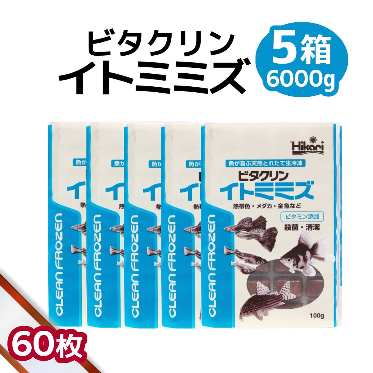「 ビタクリンイトミミズ 5箱 100g×60枚 キョーリン 冷凍餌 」魚のえさ 糸ミミズ 天然飼料 超急速冷凍 コリドラス アベニーパファ 小型熱帯魚 メダカ 川魚 金魚 ビーシュリンプ