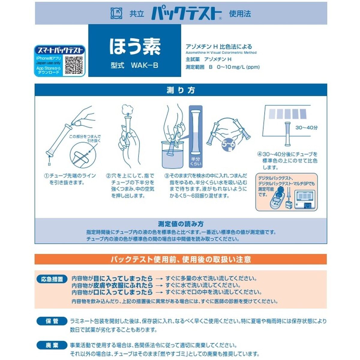 「パックテスト ほう素 5本」 標準色なし 共立理化学研究所 簡易水質検査器具 水質測定器 水質検査キット 環境測定 現地調査 排水 管理 飲料水 検査 環境 調査教育 自由研究 養魚管理 水質事故調査 井戸水