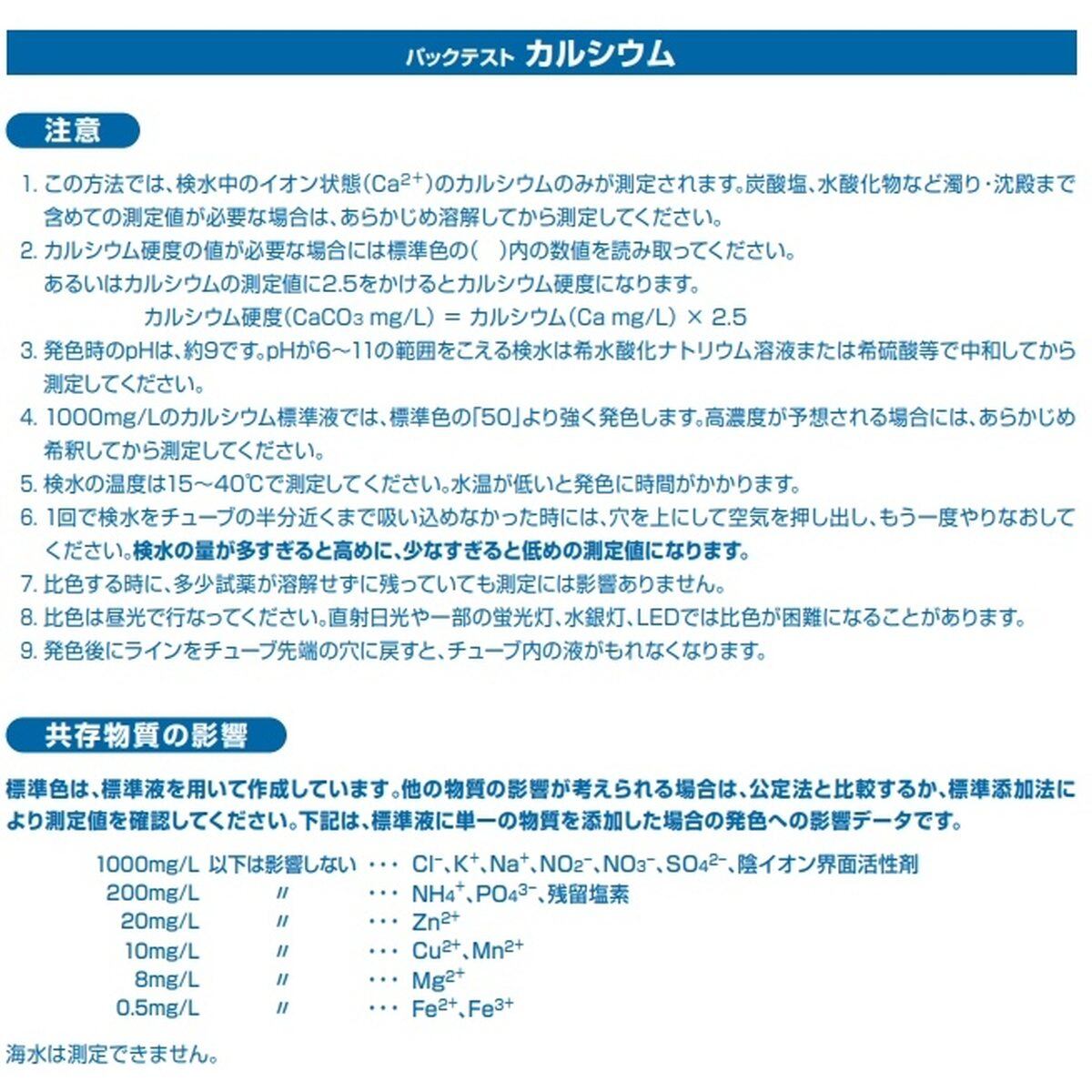 この製品は、検水中のイオン状態のカルシウム(Ca2+)を簡単に測定することができます。
