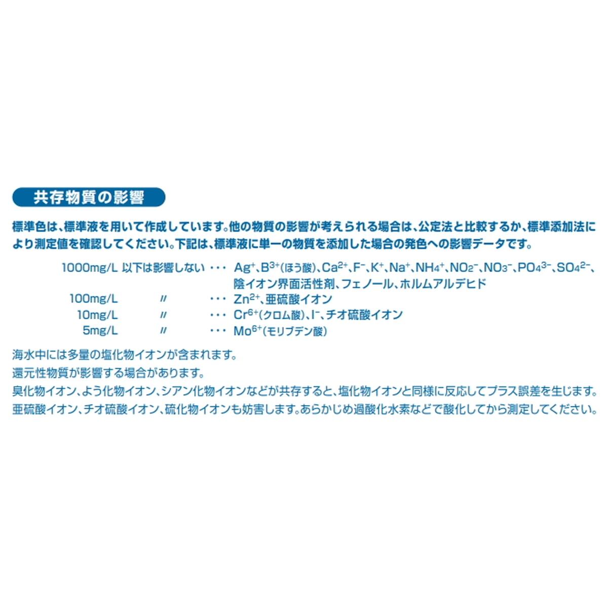 海水での使用可否 海水には、塩化物イオンが多量に含まれているため、検水の希釈が必要です。