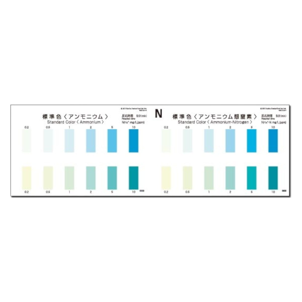 付属の標準色には、アンモニウムイオン、アンモニウム態窒素が別々に表記されています。測定する目的にあわせて、使い分けることができます。