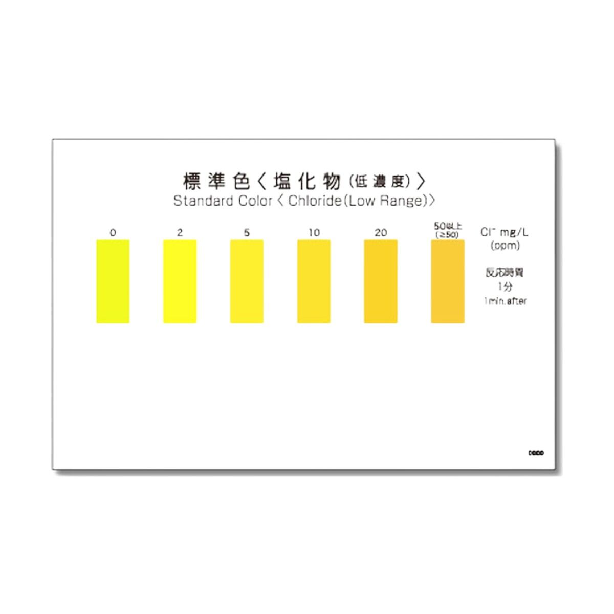 この製品は、検水中の塩化物イオン(Cl-)を簡単に測定することができます。