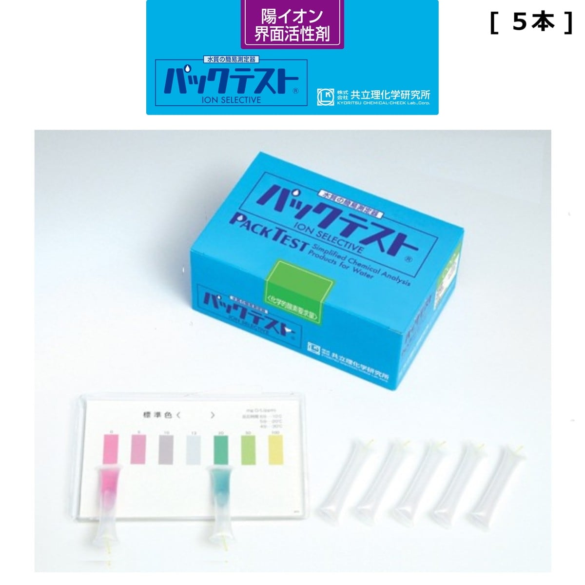 「パックテスト 陽イオン界面活性剤 5本」 標準色なし 共立理化学研究所 簡易水質検査器具 水質測定器 水質検査キット 環境測定 現地調査 排水 管理 飲料水 検査 環境 調査教育 自由研究 養魚管理 水質事故調査 井戸水