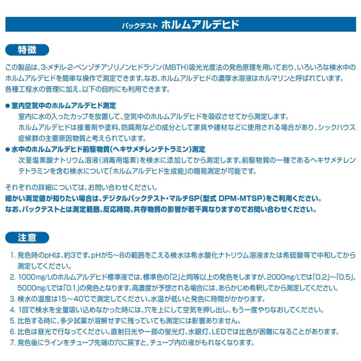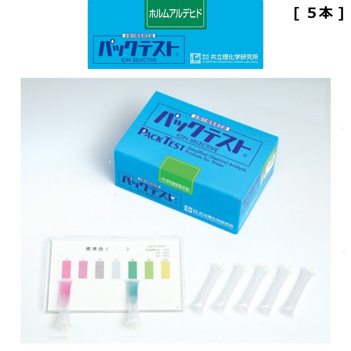 「パックテスト ホルムアルデヒド 5本 前処理剤あり」 標準色なし 共立理化学研究所 簡易水質検査器具 水質測定器 水質検査キット 環境測定 現地調査 排水 管理 飲料水 検査 環境 調査教育 自由研究 養魚管理 水質事故調査 井戸水