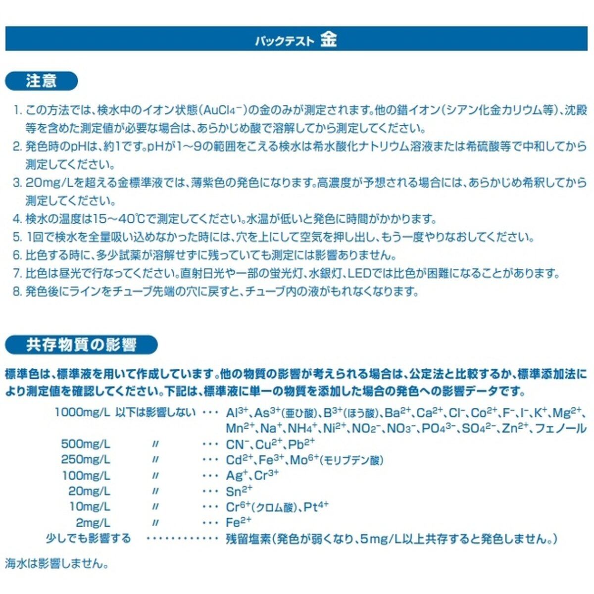 この製品は、検水中のイオン状態の金(AuCl4-)を簡単に測定することができます。