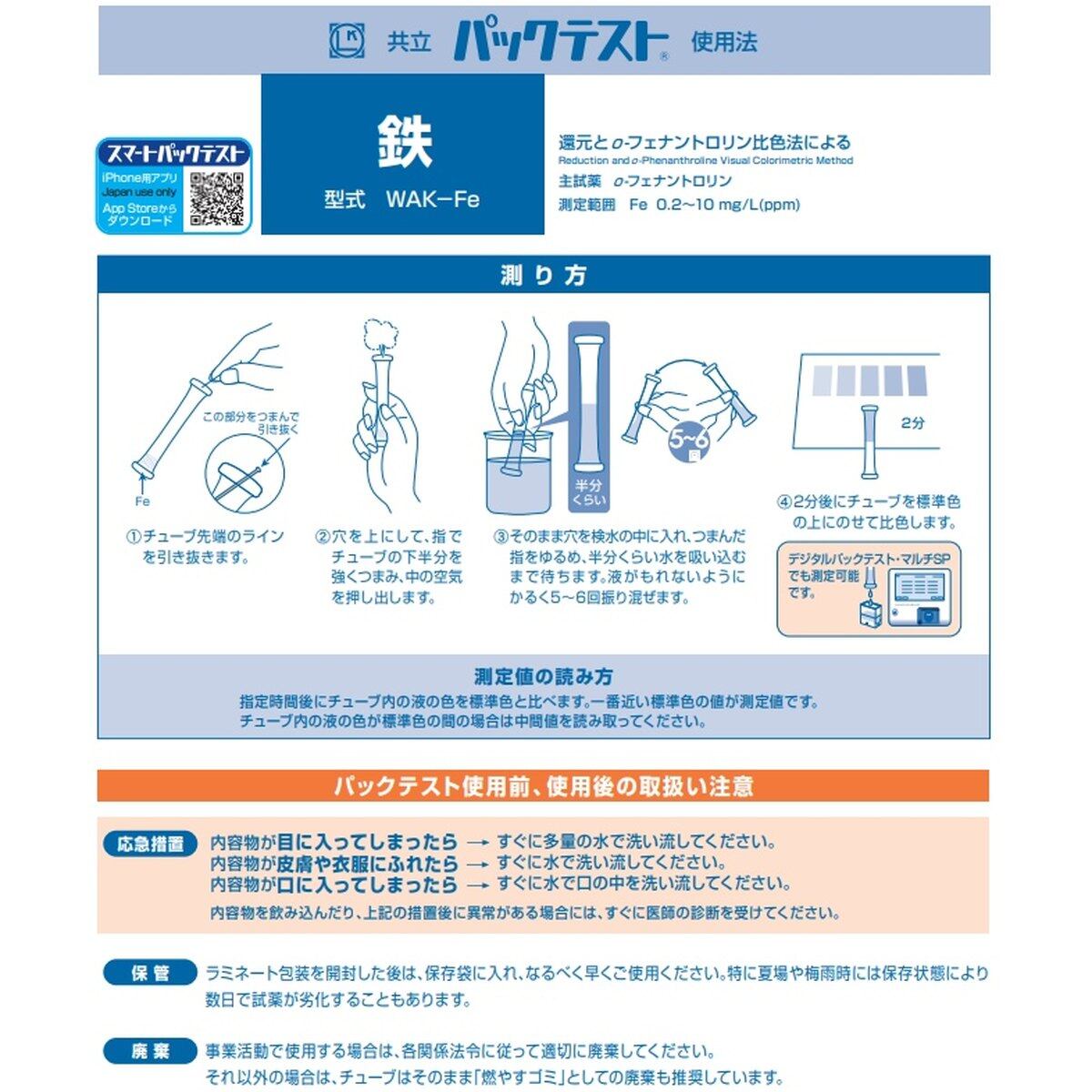 「パックテスト 鉄 1本」 標準色なし 共立理化学研究所 簡易水質検査器具 水質測定器 水質検査キット 環境測定 現地調査 排水 管理 飲料水 検査 環境 調査教育 自由研究 養魚管理 水質事故調査 井戸水