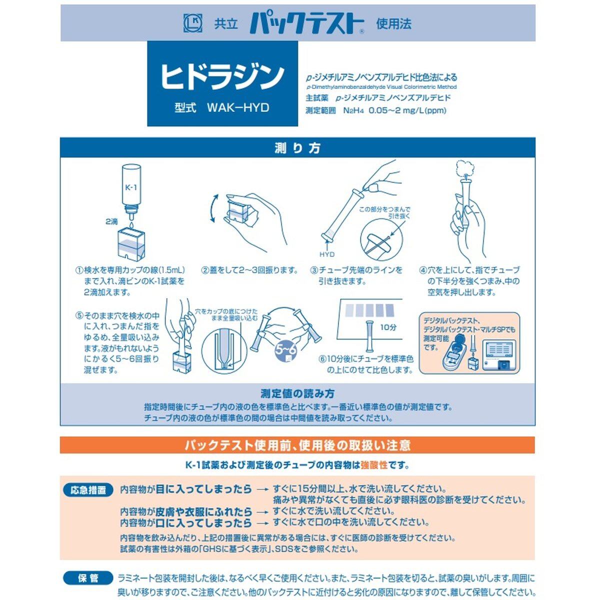 「パックテスト ヒドラジン 1本 前処理剤あり」 標準色なし 共立理化学研究所 簡易水質検査器具 水質測定器 水質検査キット 環境測定 現地調査 排水 管理 飲料水 検査 環境 調査教育 自由研究 養魚管理 水質事故調査 井戸水