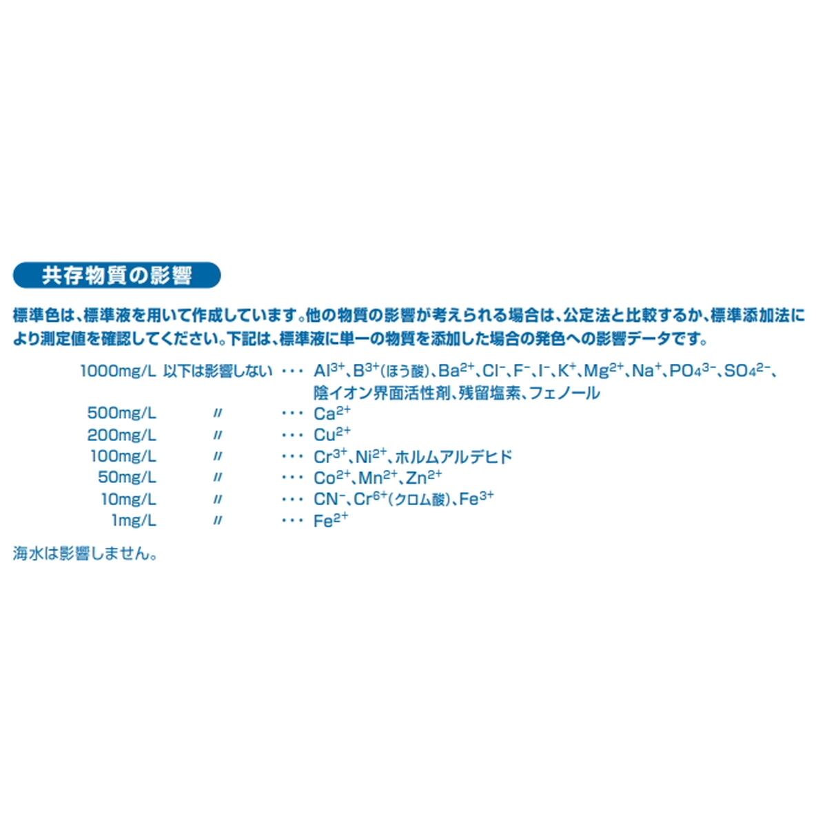 ※ばら売り商品(10本、5本、1本)には標準色(ケース入り) は付きません。オンライン上の標準色をご利用ください。 ※パックテスト使用前、使用後の取扱い注意 K-1試薬やK-2試薬など、前処理が必要な場合があります。 チューブの内容物は液性が高いものがありますので、デジタル説明書をお読みの上、 お客様ご自身の管理下で安全に使用してください。