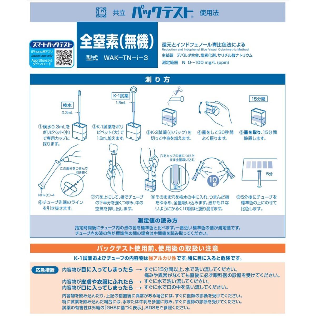 「パックテスト 全窒素(無機) 1本 前処理剤あり」 標準色なし 共立理化学研究所 簡易水質検査器具 水質測定器 水質検査キット 環境測定 現地調査 排水 管理 飲料水 検査 環境 調査教育 自由研究 養魚管理 水質事故調査 井戸水