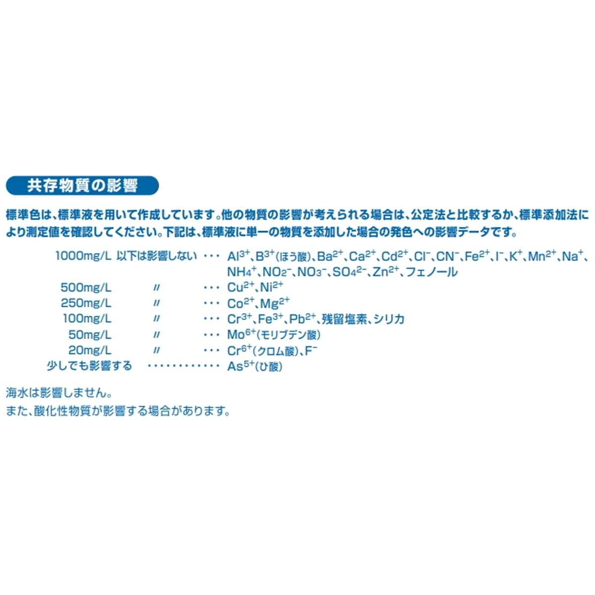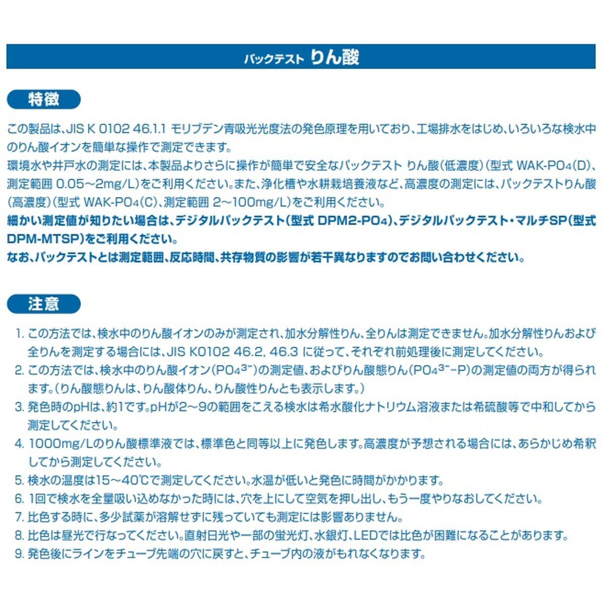 この製品は、工場排水をはじめ、いろいろな検水中のりん酸イオン(PO43-)を簡単な操作で測定することができます。