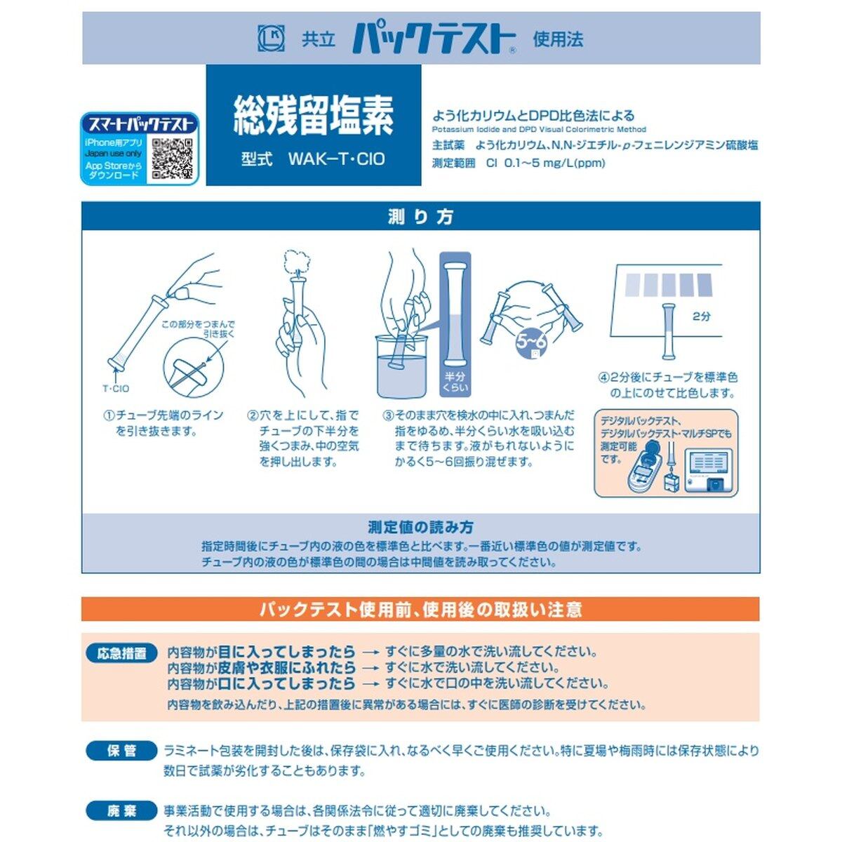 「パックテスト 総残留塩素 10本」 標準色なし 共立理化学研究所 簡易水質検査器具 水質測定器 水質検査キット 環境測定 現地調査 排水 管理 飲料水 検査 環境 調査教育 自由研究 養魚管理 水質事故調査 井戸水