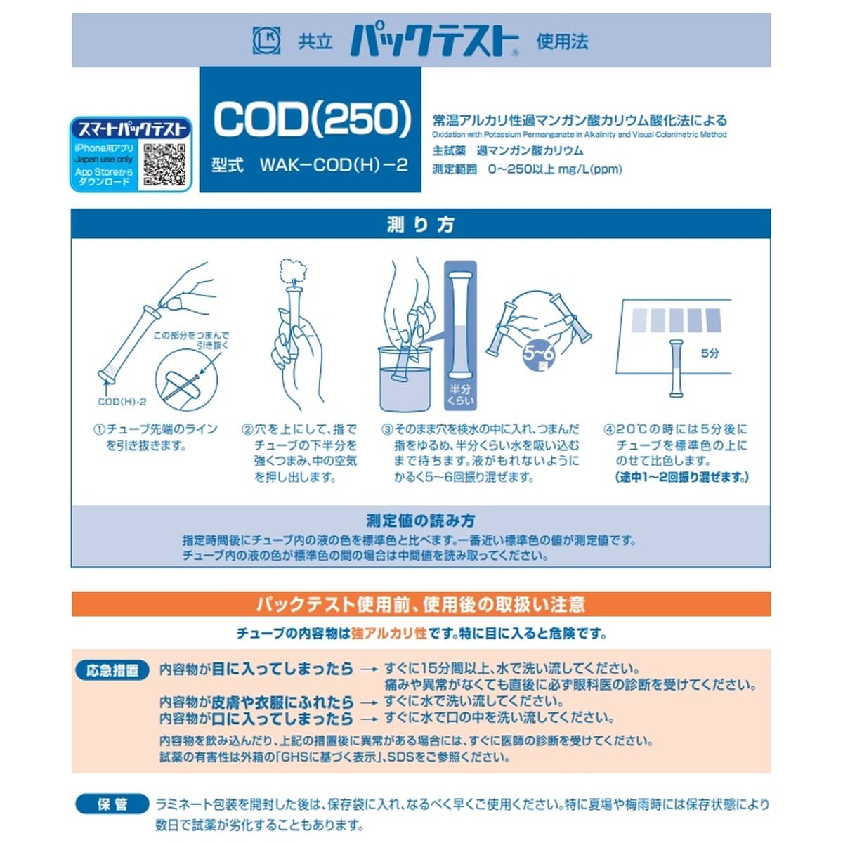 「パックテスト COD(250) 10本」 標準色なし 共立理化学研究所 簡易水質検査器具 水質測定器 水質検査キット 環境測定 現地調査 排水 管理 飲料水 検査 環境 調査教育 自由研究 養魚管理 水質事故調査 井戸水
