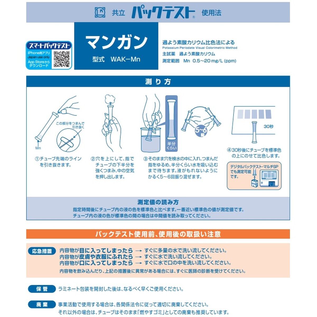 「パックテスト マンガン 10本」 標準色なし 共立理化学研究所 簡易水質検査器具 水質測定器 水質検査キット 環境測定 現地調査 排水 管理 飲料水 検査 環境 調査教育 自由研究 養魚管理 水質事故調査 井戸水