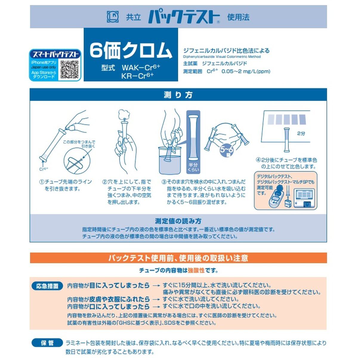「パックテスト 6価クロム 10本」 標準色なし 共立理化学研究所 簡易水質検査器具 水質測定器 水質検査キット 環境測定 現地調査 排水 管理 飲料水 検査 環境 調査教育 自由研究 養魚管理 水質事故調査 井戸水