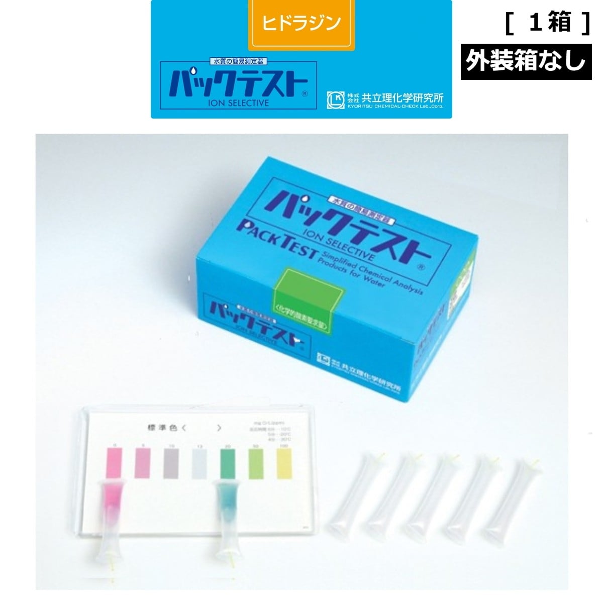 「パックテスト ヒドラジン 1箱分(40本) 外装箱なし 標準色付き」 共立理化学研究所 簡易水質検査器具 水質測定器 水質検査キット 環境測定 現地調査 排水 管理 飲料水 検査 環境 調査 教材 教育 自由研究 養魚管理 水質事故調査 井戸水