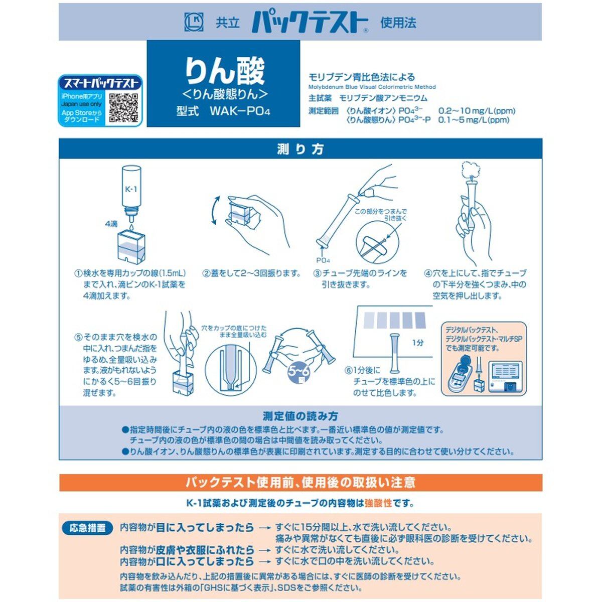 「パックテスト りん酸 1箱分(40本) 外装箱なし 標準色付き」 共立理化学研究所 簡易水質検査器具 水質測定器 水質検査キット 環境測定 現地調査 排水 管理 飲料水 検査 環境 調査 教材 教育 自由研究 養魚管理 水質事故調査 井戸水