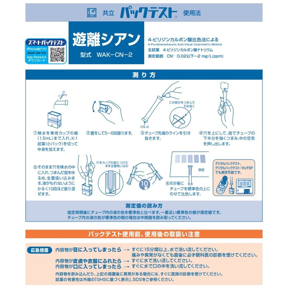 「パックテスト 遊離シアン 5本」 標準色なし 共立理化学研究所 簡易水質検査器具 水質測定器 水質検査キット 環境測定 現地調査 排水 管理 飲料水 検査 環境 調査教育 自由研究 養魚管理 水質事故調査 井戸水