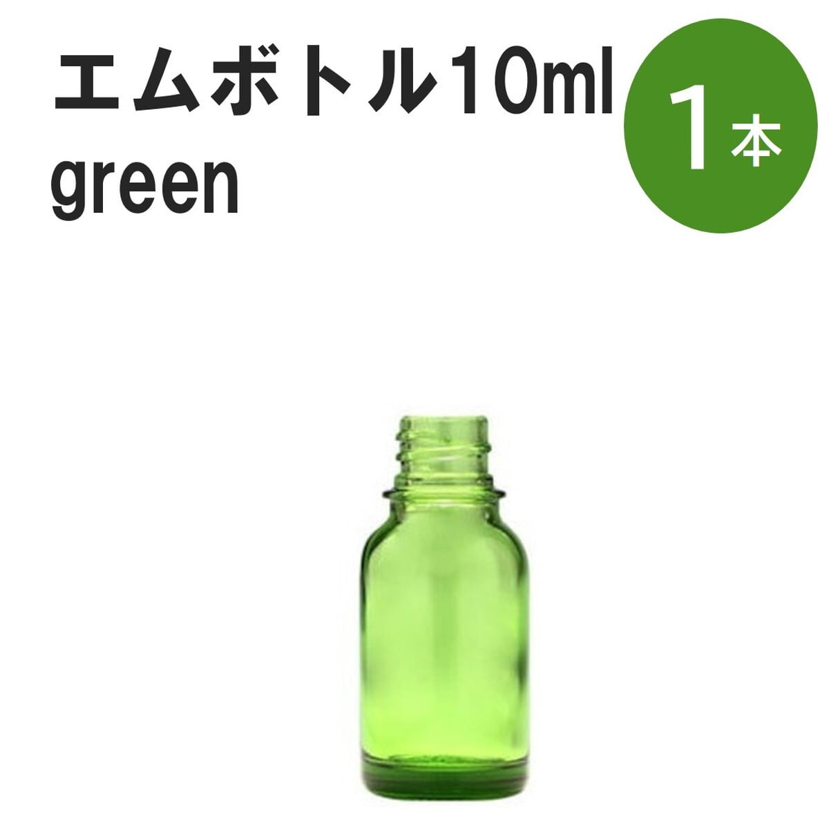 「グリーン エムボトルNo.10G 10ml キャップ シャインキャップ 1本 」 遮光ガラス瓶 小分け 詰め替え用 遮光瓶 詰め替え容器 空容器 保存用アロマ 手作りコスメ 精油 詰め替え 保存容器 ガラス瓶