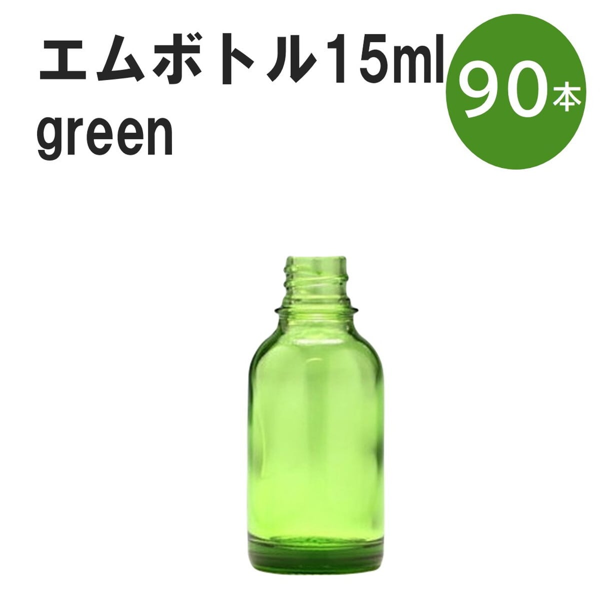 「グリーン エムボトルNo.15G 15ml キャップ シャインキャップ 90本 」 遮光ガラス瓶 小分け 詰め替え用 遮光瓶 詰め替え容器 空容器 保存用アロマ 手作りコスメ 精油 詰め替え 保存容器 ガラス瓶