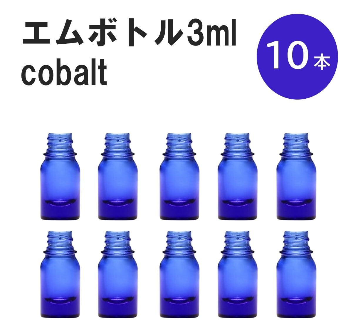 「コバルト エムボトルNo.3C 3ml キャップ シャインキャップ 10本 」 遮光ガラス瓶 小分け 詰め替え用 遮光瓶 詰め替え容器 空容器 保存用アロマ 手作りコスメ 精油 詰め替え 保存容器 ガラス瓶