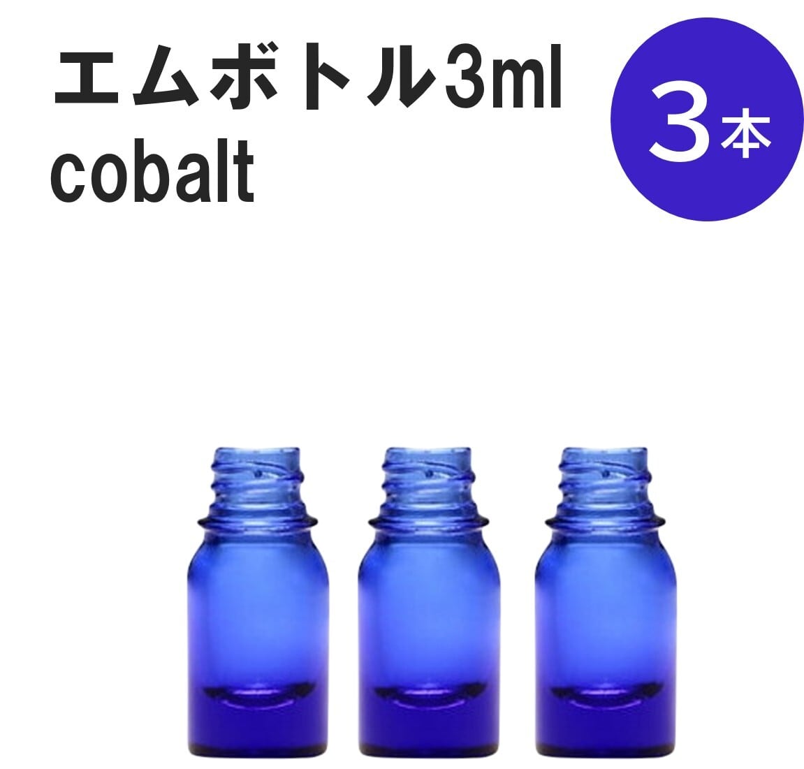 「コバルト エムボトルNo.3C 3ml キャップ シャインキャップ 3本 」 遮光ガラス瓶 小分け 詰め替え用 遮光瓶 詰め替え容器 空容器 保存用アロマ 手作りコスメ 精油 詰め替え 保存容器 ガラス瓶