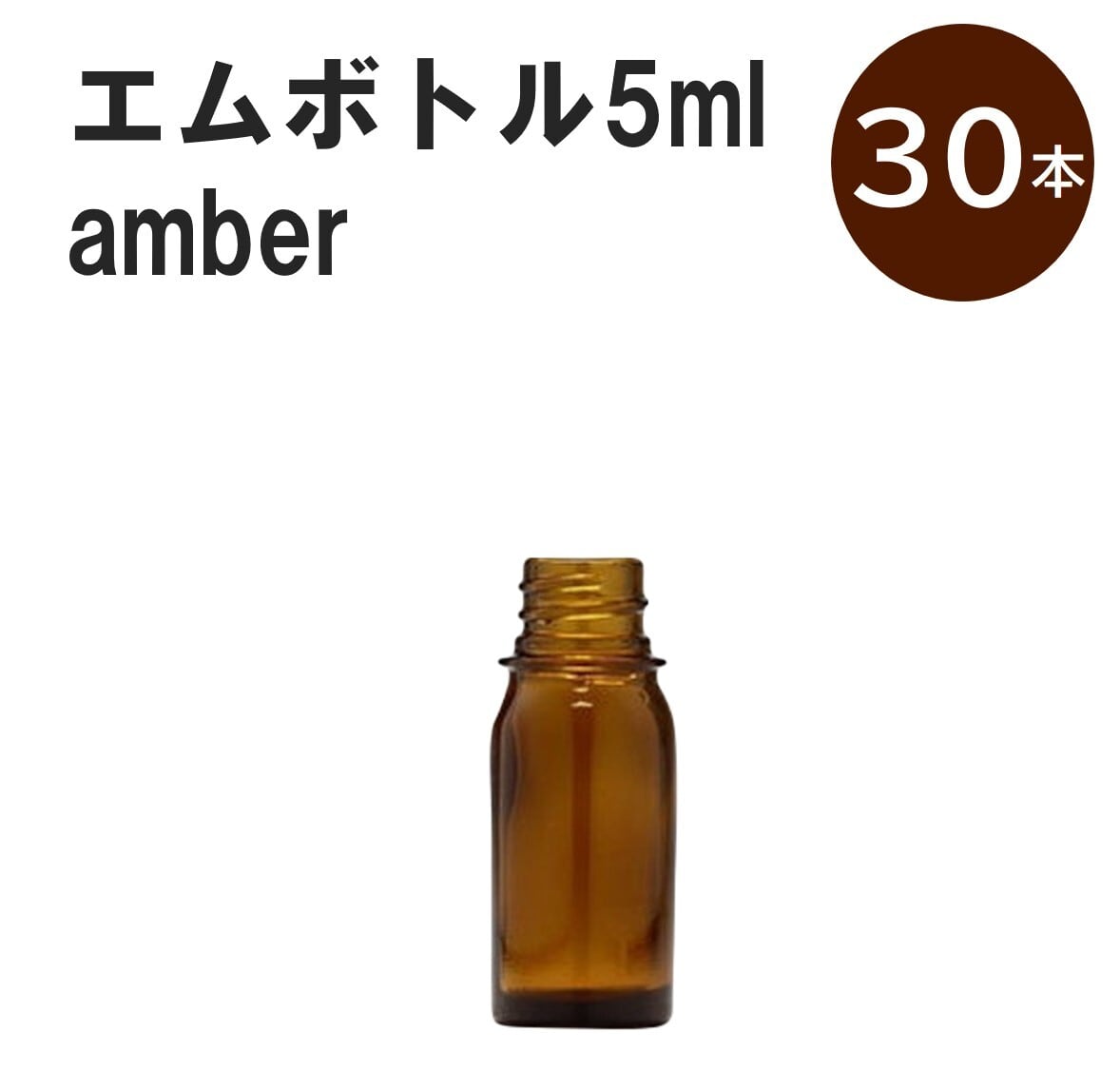 「アンバー エムボトルNo.5A 5ml キャップ シャインキャップ 30本 」 遮光ガラス瓶 小分け 詰め替え用 遮光瓶 詰め替え容器 空容器 保存用アロマ 手作りコスメ 精油 詰め替え 保存容器 ガラス瓶