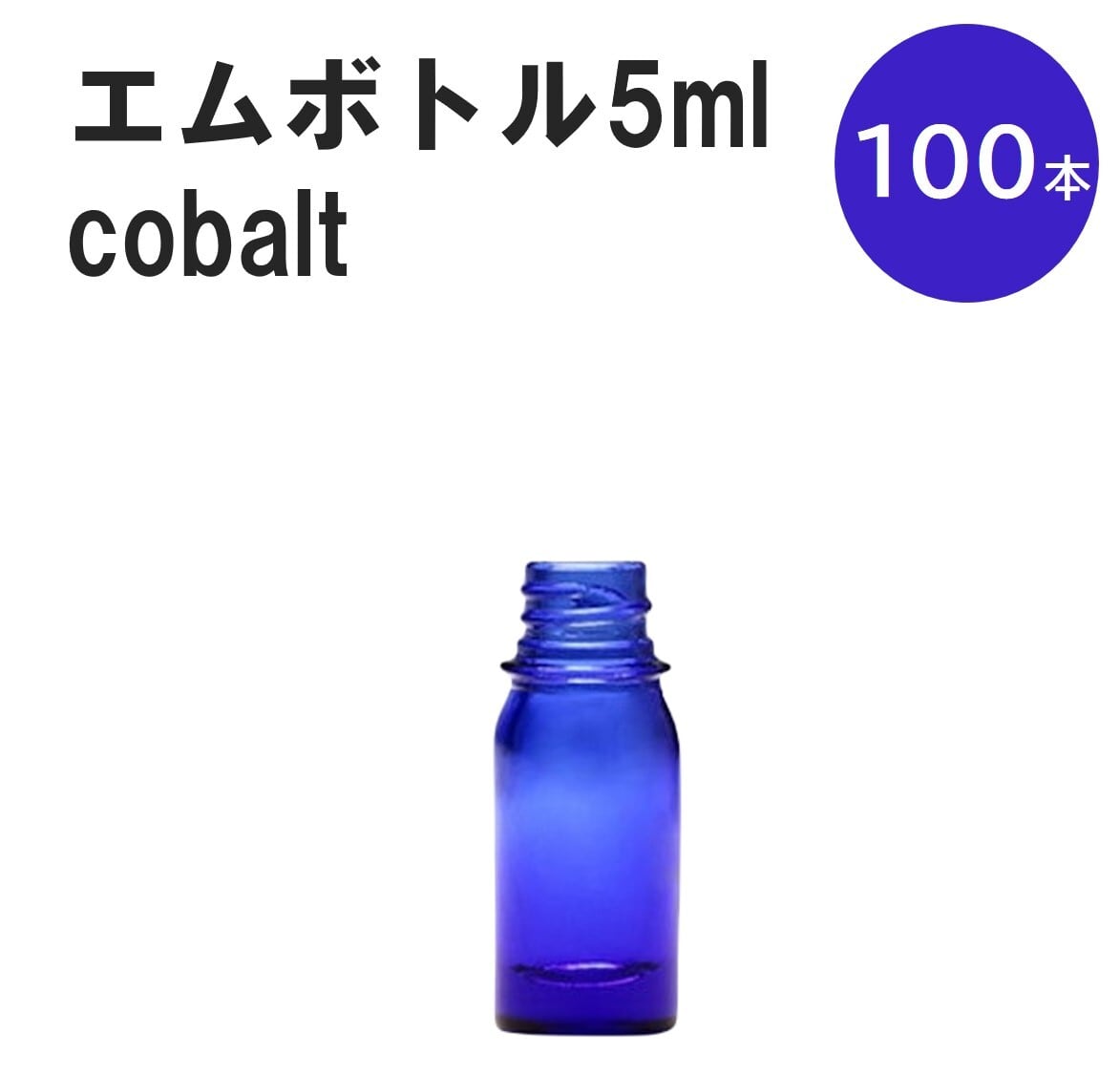 「コバルト エムボトルNo.5C 5ml キャップ シャインキャップ 100本 」 遮光ガラス瓶 小分け 詰め替え用 遮光瓶 詰め替え容器 空容器 保存用アロマ 手作りコスメ 精油 詰め替え 保存容器 ガラス瓶