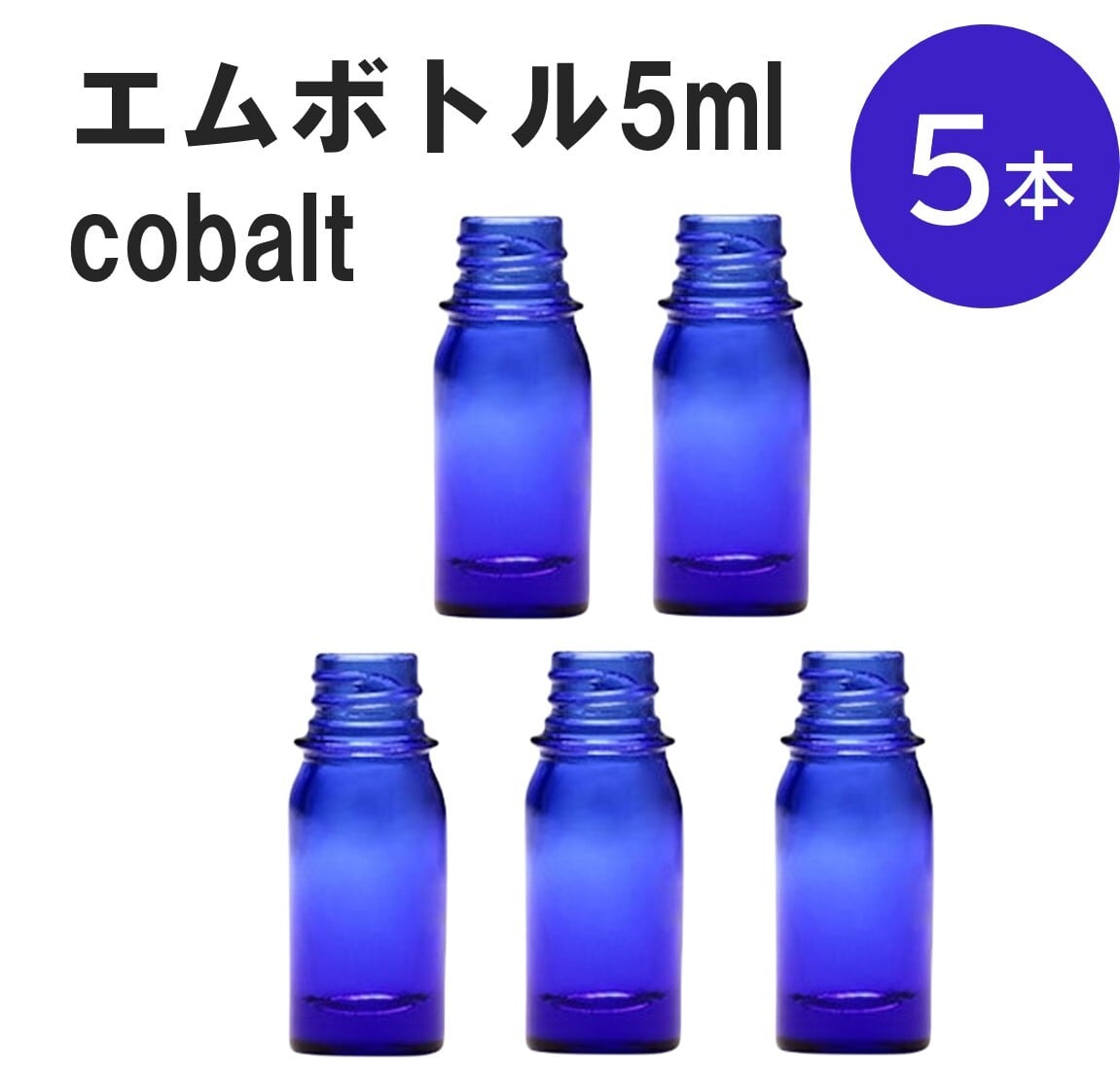 「コバルト エムボトルNo.5C 5ml キャップ シャインキャップ 5本 」 遮光ガラス瓶 小分け 詰め替え用 遮光瓶 詰め替え容器 空容器 保存用アロマ 手作りコスメ 精油 詰め替え 保存容器 ガラス瓶