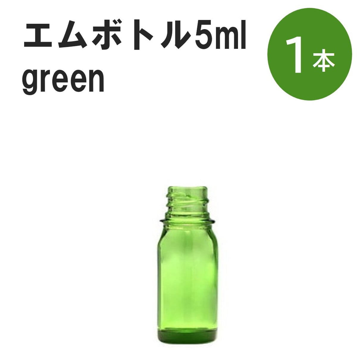 「グリーン エムボトルNo.5G 5ml キャップ シャインキャップ 1本 」 遮光ガラス瓶 小分け 詰め替え用 遮光瓶 詰め替え容器 空容器 保存用アロマ 手作りコスメ 精油 詰め替え 保存容器 ガラス瓶