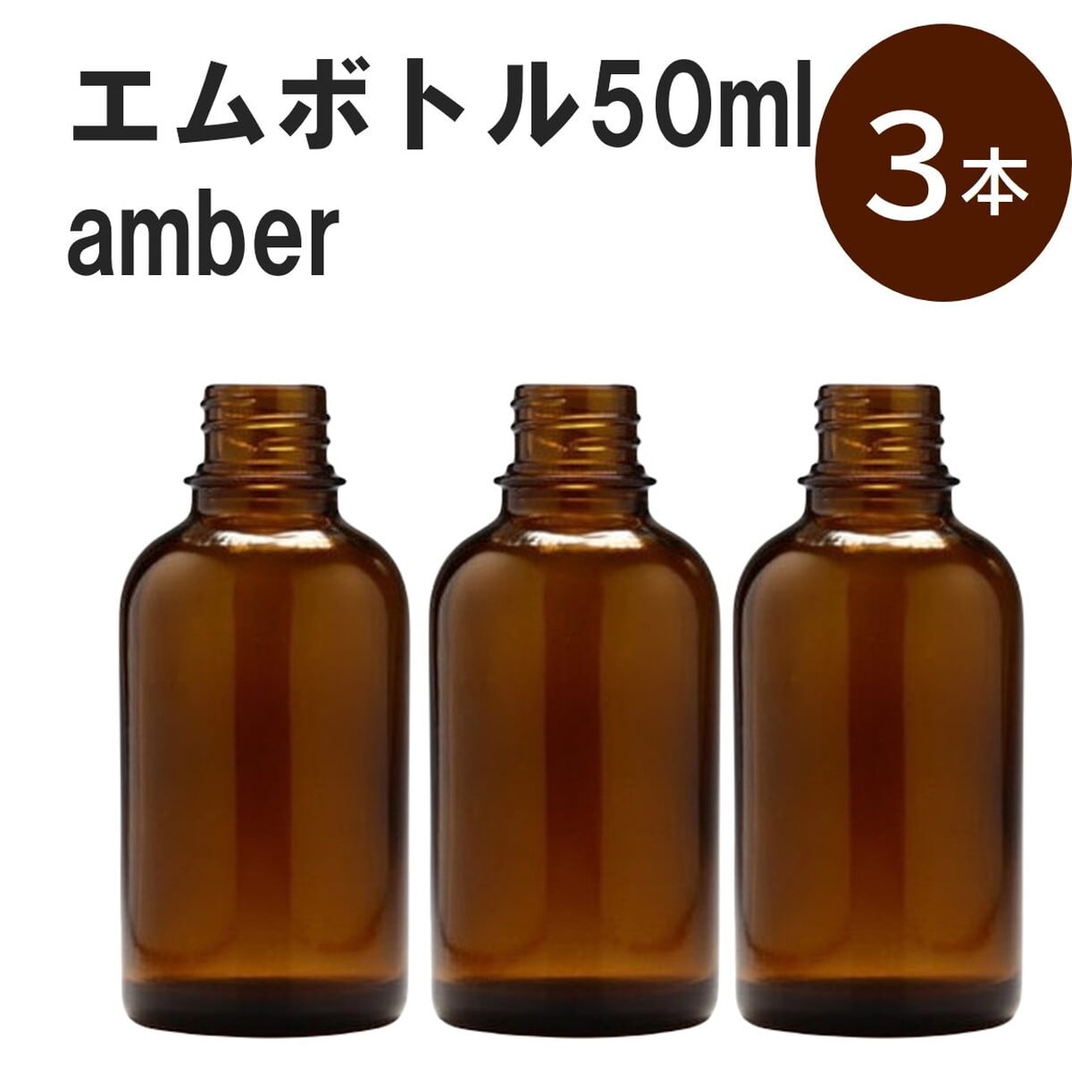 「アンバー エムボトルNo.50A 50ml キャップ アルミスクリューキャップ 3本 」 遮光ガラス瓶 小分け 詰め替え用 遮光瓶 詰め替え容器 空容器 保存用アロマ 手作りコスメ 精油 詰め替え 保存容器 ガラス瓶