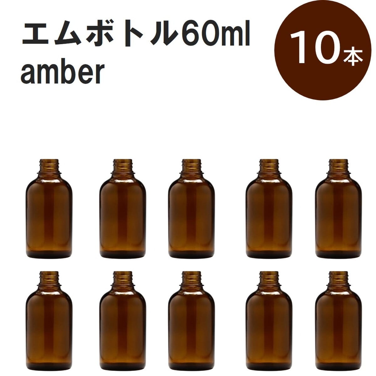 「アンバー エムボトルNo.60A 60ml キャップ アルミスクリューキャップ 10本 」 遮光ガラス瓶 小分け 詰め替え用 遮光瓶 詰め替え容器 空容器 保存用アロマ 手作りコスメ 精油 詰め替え 保存容器 ガラス瓶