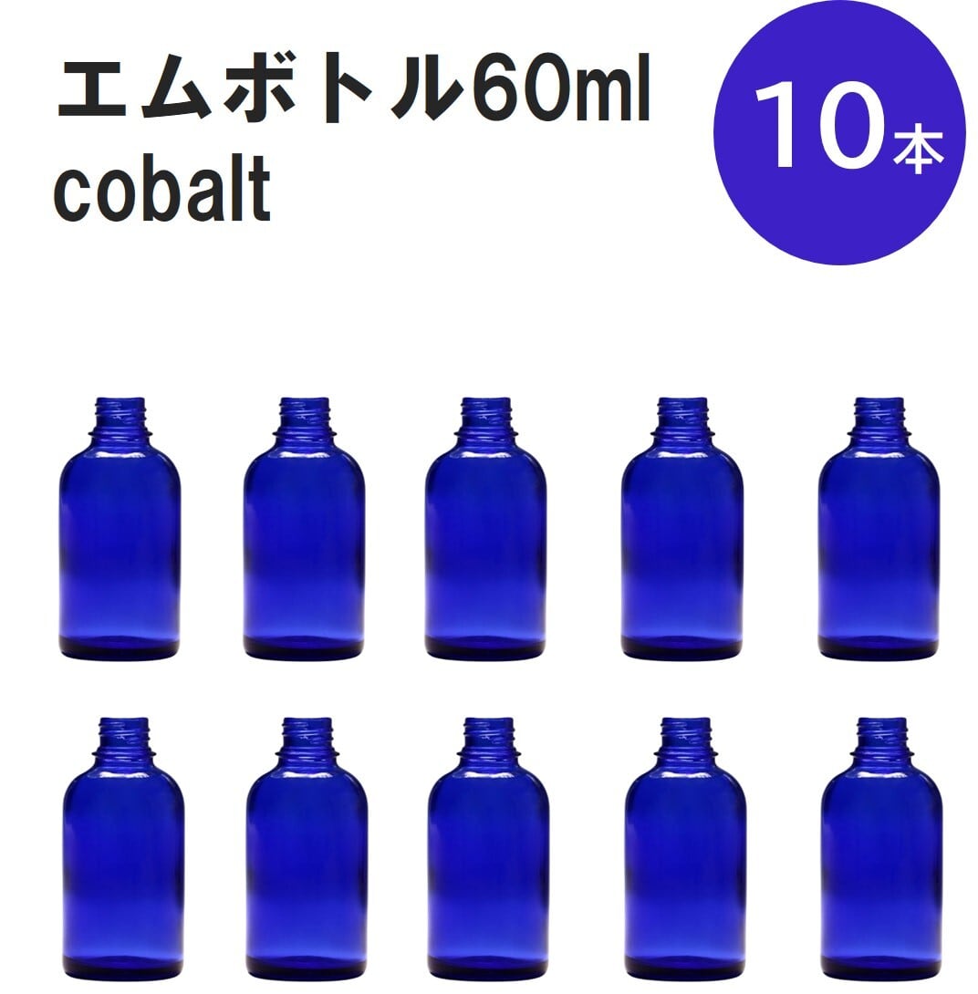 「コバルト エムボトルNo.60C 60ml キャップ アルミスクリューキャップ 10本 」 遮光ガラス瓶 小分け 詰め替え用 遮光瓶 詰め替え容器 空容器 保存用アロマ 手作りコスメ 精油 詰め替え 保存容器 ガラス瓶