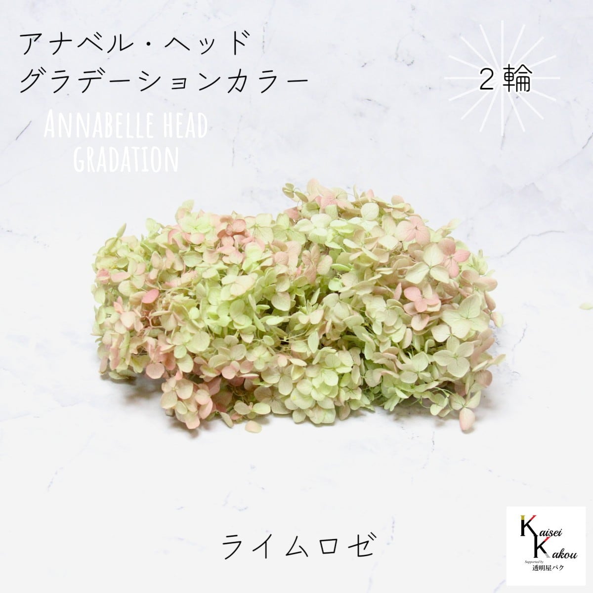 宅急便で発送 大地農園! プリザーブドフラワー 「ソフトアナベルアジサイ・ヘッド(グラデーション) ライムロゼ 2輪」 アジサイ プリザ ドライフラワー 花材 装飾 ハーバリウム おしゃれ かわいい プレゼント 贈り物 オオチノウエン