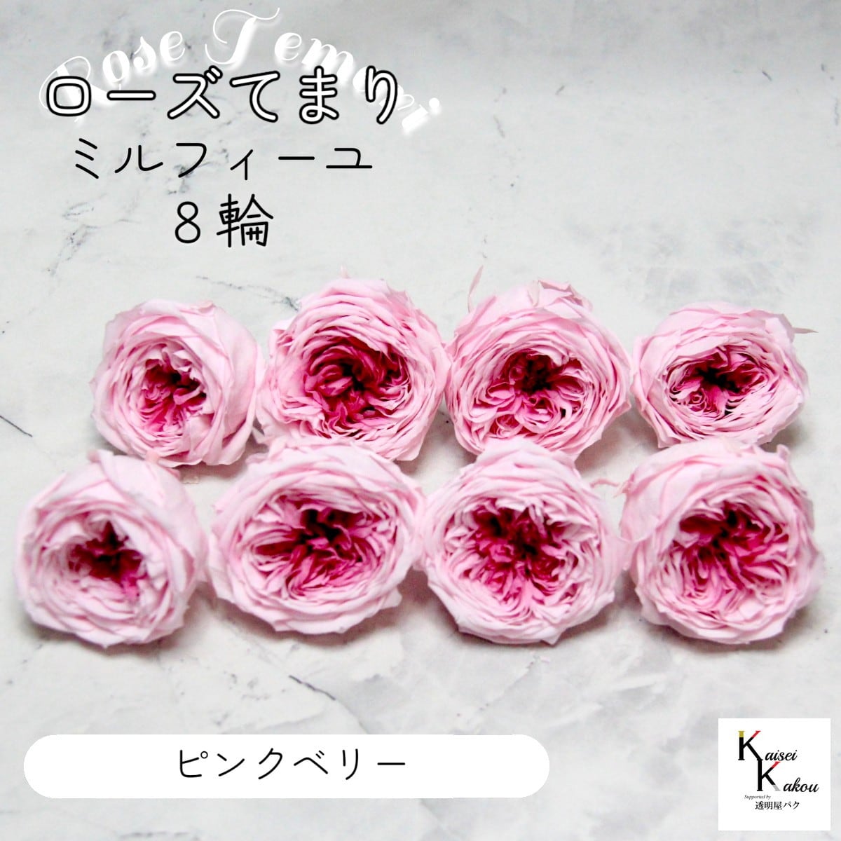 大地農園!プリザーブドフラワー 「ローズ・てまり・ミルフィーユ ピンクベリー 8輪」 プリザ 花材 ハーバリウム おしゃれ かわいい プレゼント 贈り物 オオチノウエン バラ 薔薇 ローズ rose 自然からの贈り物。大地農園プリザーブドフラワー! 花径:4〜5cmφ花丈:約2.5〜4cmふんわりと丸く結んだ“てまり”のようなフォルム。手のひらにそっと収まる可憐さと、飾るだけで空間を華やかにする存在感をあわせ持つ、プリザーブドフラワーです。メインの花材としても、添花としても使える程よいサイズで手頃な価格も魅力です。「お部屋にお花を飾りたいけど生花は管理が大変そう・・・」という方や「インテリアとしてお花を取り入れたい」という方に。大切な人に贈り物をする際にもよく選ばれています。リース、アレンジ、ワックスサシェや髪飾りなどに...便利に使えます。取扱いの注意プリザーブドフラワーは湿気をとても嫌います。湿度の高い場所では枝や茎の切り口や表面から保存液や染料が染み出すことがあり、衣服などを汚す恐れがあります。ご使用の際には充分ご注意ください。自然素材を加工したプリザーブドフラワーの特性上、ガクに小さな欠けや割れが見られる場合がございます。製造工程で生じるものであり、商品の風合いとしてお楽しみいただければ幸いです。品質基準を満たした正常品として取り扱っておりますため、返品・交換は対象外となりますのでご了承ください。※なるべくふんわりと梱包いたしますが、配送による破損、潰れ、ほころびなどが生じることがございます。ご心配な方は宅配便をご指定下さい。※配送の都合上、商品を箱に直接梱包することもございます。※配送の都合上、使えない根元の部分はカットする場合があります。重量はカット前の重量となります。※高温多湿の場所では染料が切り口や表面からもれることがありますので、ご注意ください。※天然素材を使用している為、商品により色、サイズなど多少の違いが生じる場合がございます。※パッケージデザイン等が予告なく変更される場合もあります。※商品廃番・メーカー欠品など諸事情によりお届けできない場合がございます。※上記内容におけます返品交換は承れませんので、あらかじめご了承ください。 5