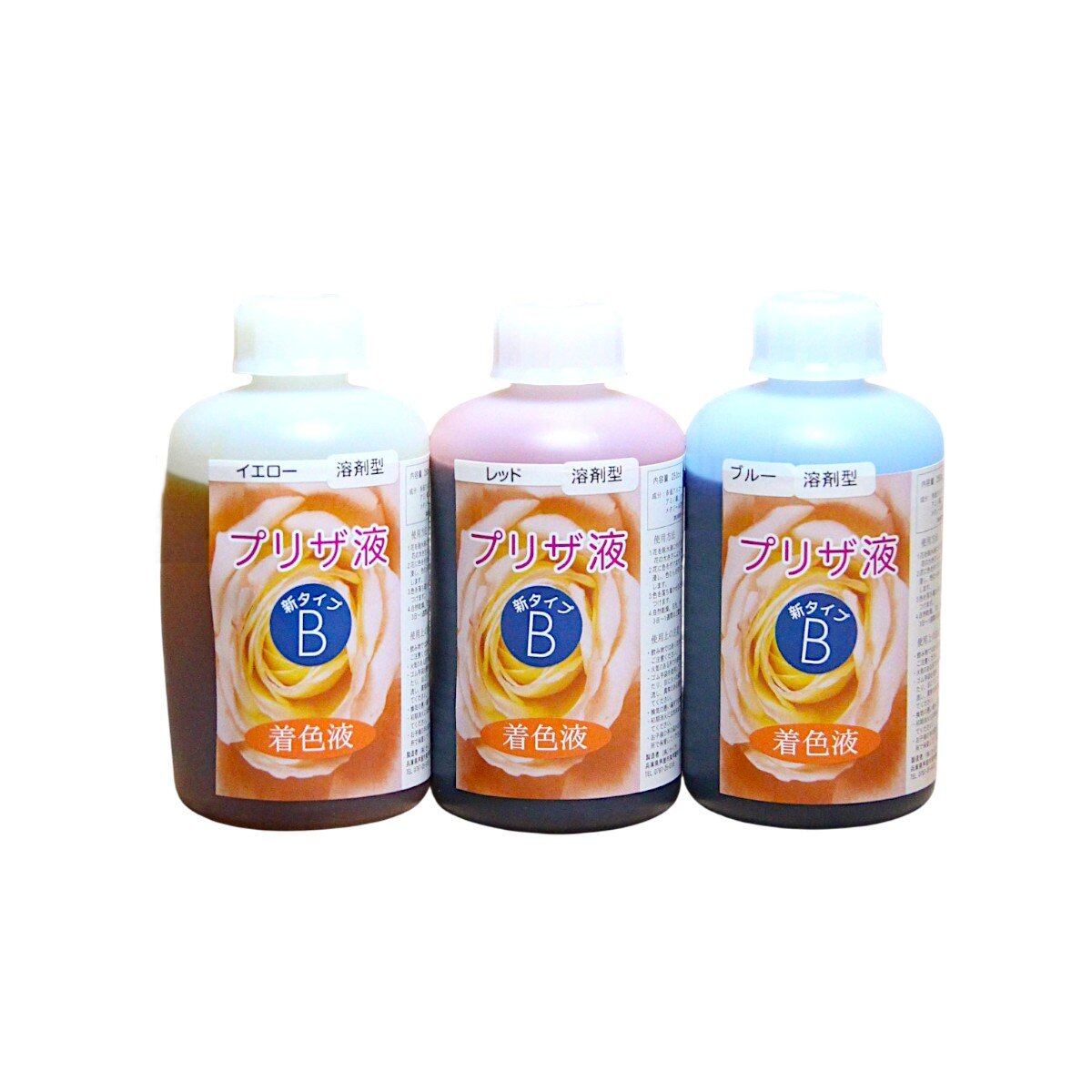 「プリザ液 新B 溶剤 3色セット カラーミックス 250cc 各1本ずつ」 「レッド イエロー ブルー」 着色液 プリザーブドフラワー液 手作り 小花 葉物 手作り 花材 生花 資材 ハーバリウム オリジナルグッズ ハンドメイド