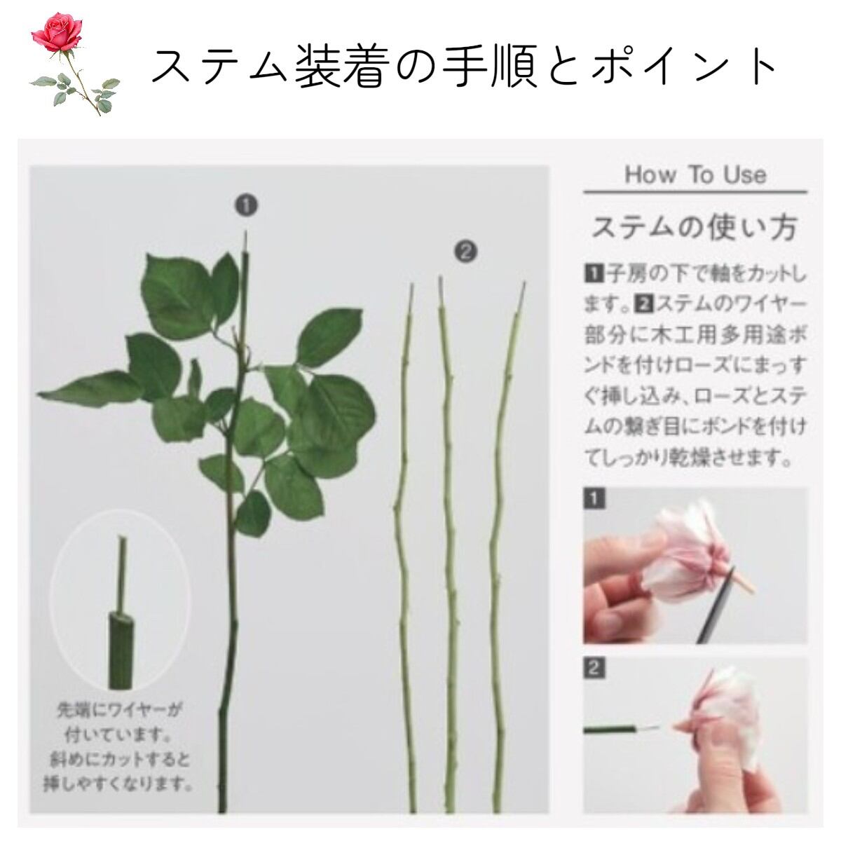 大地農園!プリザーブドフラワー 「国産バラのくき グリーン 1本」 バラ用ステム プリザ 花材 ハーバリウム 国産バラ かわいい プレゼント 贈り物 オオチノウエン バラ 薔薇 ローズ rose