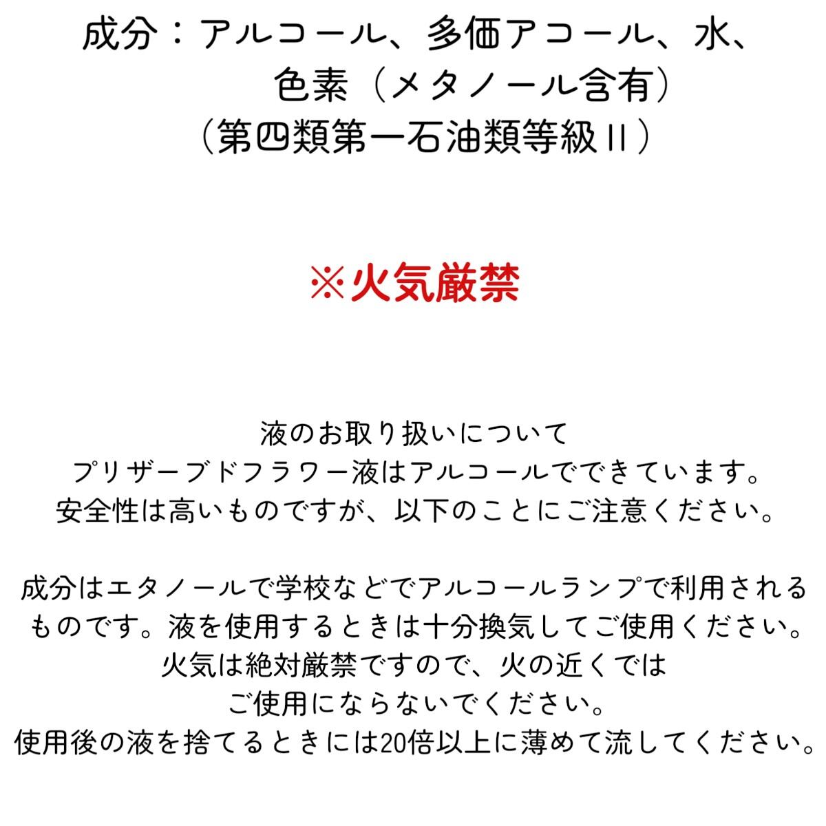 プリザーブドフラワー液はアルコールでできています。安全性は高いものですが、以下のことにご注意ください。