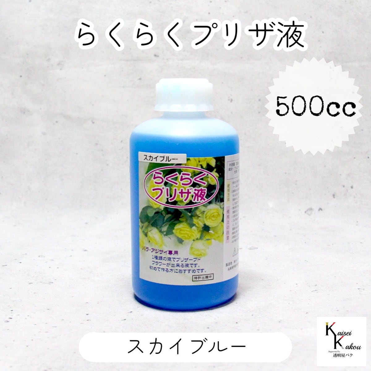 「らくらくプリザ液 スカイブルー(水性) 500cc 1本」 1液タイプ 1液型 バラ アジサイ 簡易作成液 プリザーブドフラワー液 手作り 小花 葉物 手作り 資材 ハーバリウム オリジナルグッズ ハンドメイド デコレーション