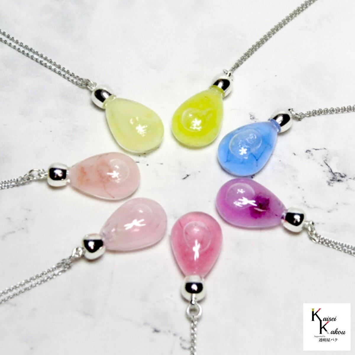 「 Bloom drop necklace 花雫ネックレス しずく型大 レモンソーダ」 カスミ草入りクレオパトラストームグラスネックレス ストームグラスネックレス カラーストーム ラッキーカラー 推しカラー 推し活 フィッツロイ お天気管 ボトル